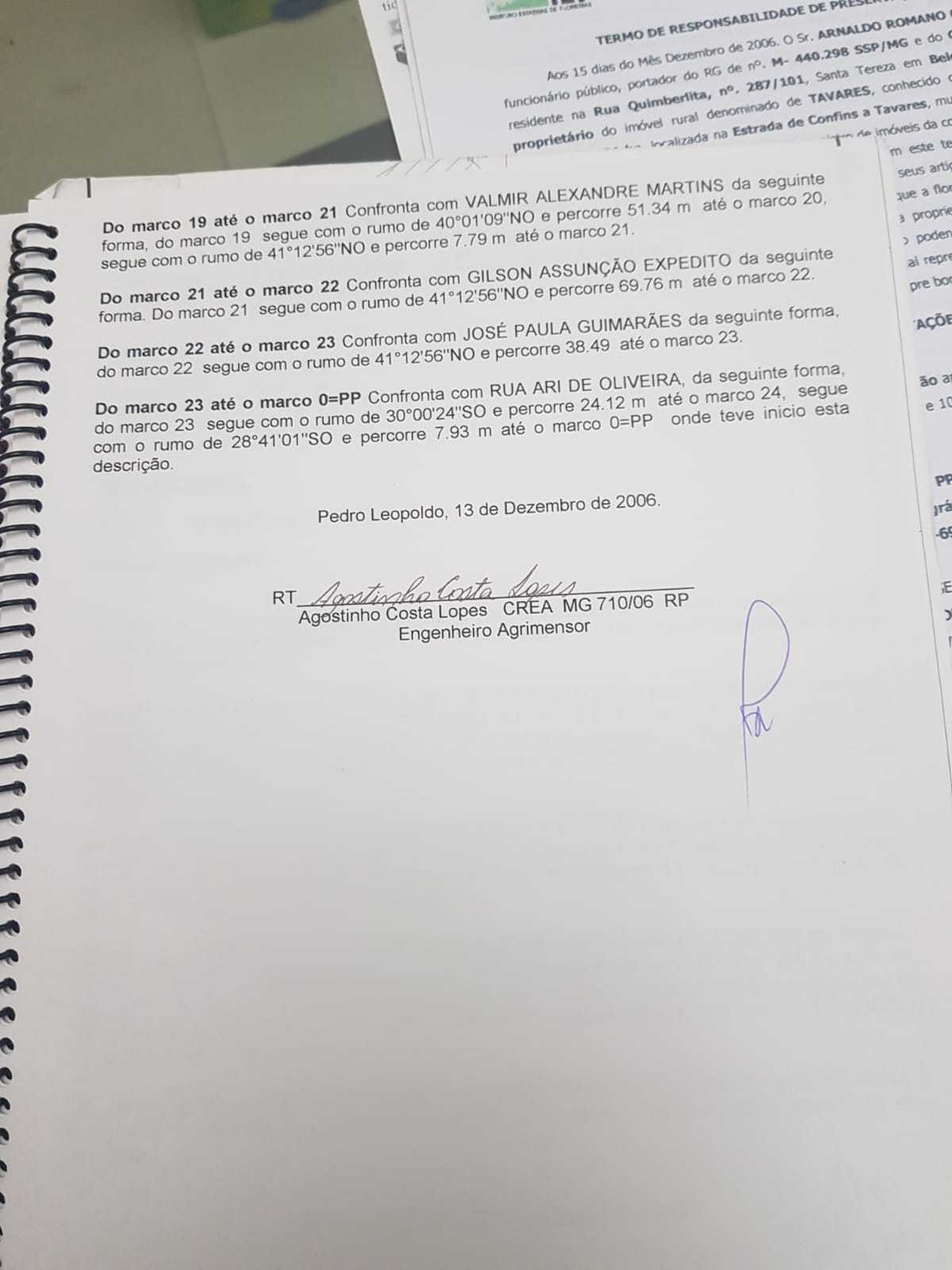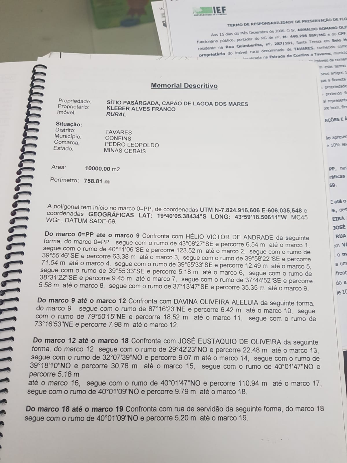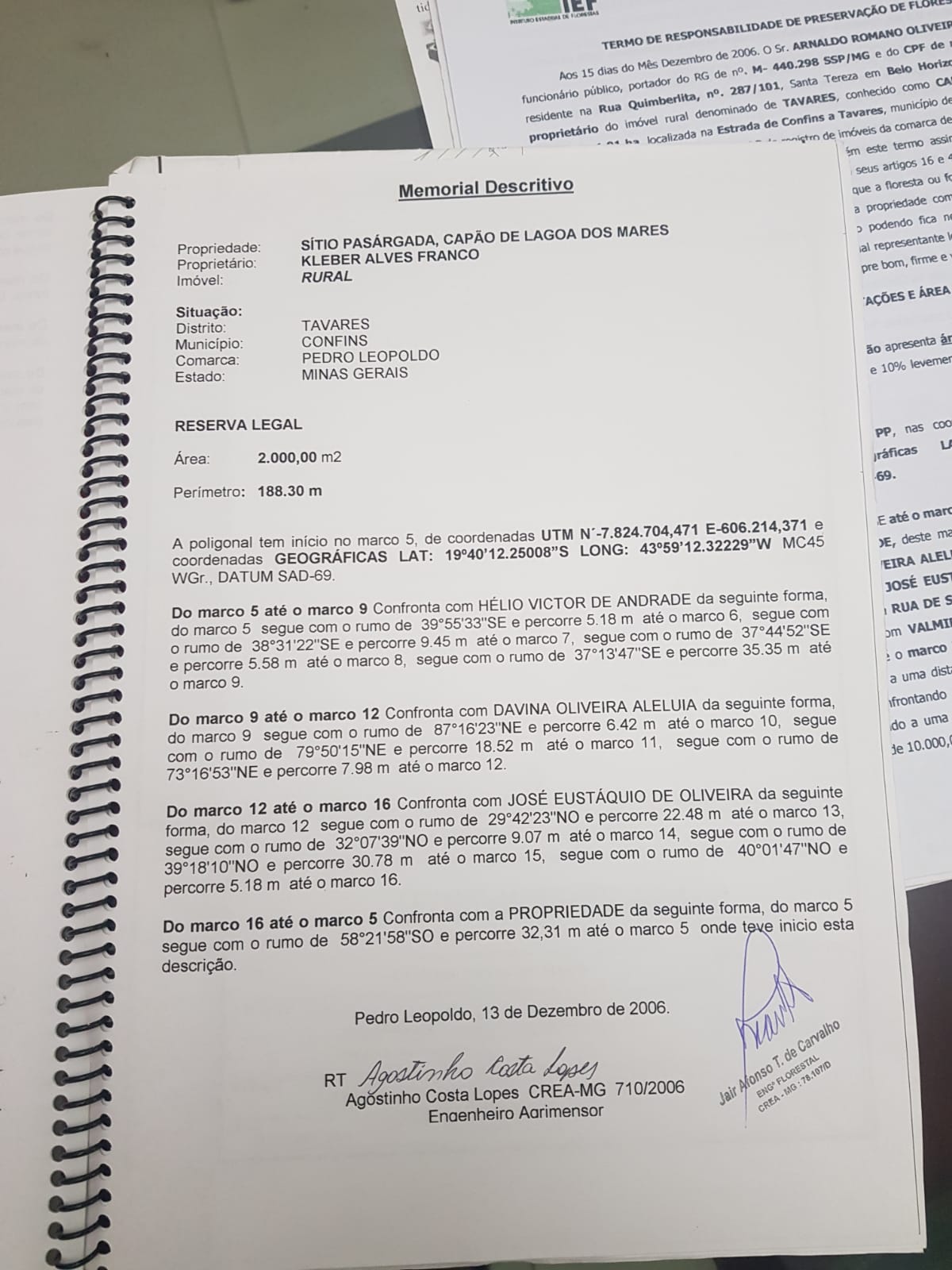 Documentação completa com RGI, Levantamento topográfico e Memoriais descritivo da chácara e reserva.